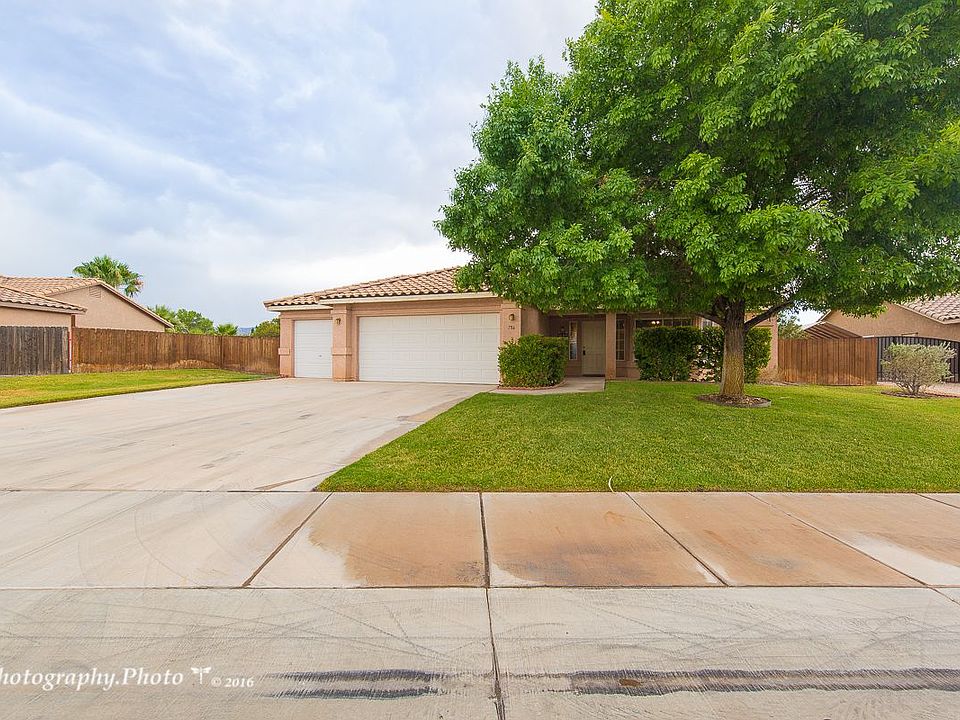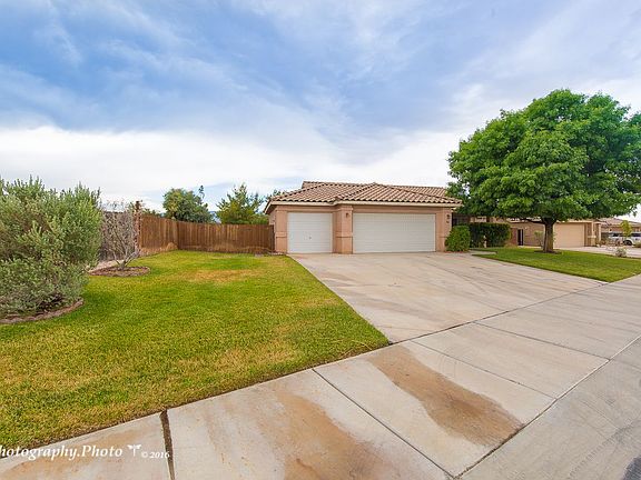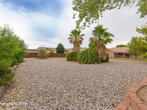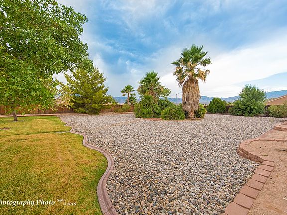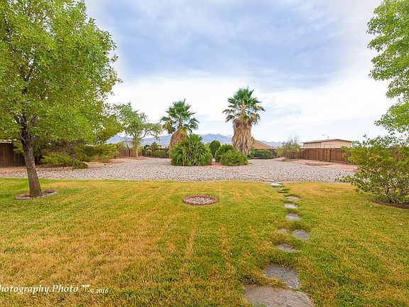This desirable home is situated on over a third of an acre in Desert Rose. This incredibly private home site is rare in a non-HOA community. The 3 car garage and RV parking allow ample room for vehicles and various toys and the there is plenty of room for a swimming pool. The view of the southern mountains is awesome and the orientation is ideal. The yard is fully landscaped and fenced. The towering Palms, mature trees, various plants and well manicured lawn provide the perfect splash of green. The great room and the master bedroom both lead to a spacious covered patio. The home has vaulted ceilings and numerous windows. Brand new 20 X 20 tile has been laid in the kitchen, breakfast/dining area and entry. The guest bedroom off the front of the home has a bay window providing a lot of natural light. This single family community is centrally located off of Mesquite Boulevard.