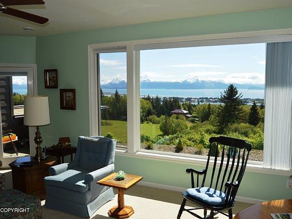 Enjoy a most stunning view of Kachemak Bay. Elegant living space, beautiful kitchen, spacious living room with the beautiful view, large size full view master suite, walk-in closet. Large two car garage and an elevator to take you from floor to floor. A flex-room on third floor can be used as a 3rd bedroom.
