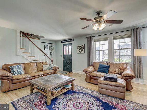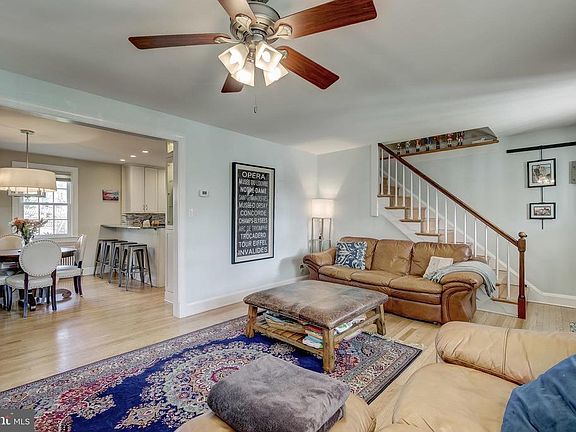 Charming Stoneleigh home with open floor plan and hardwood floors. Updated renovated kitchen with newer appliances, copper pipes, built-in lighted china closet, windows(2014), boiler and hot water heater(2015), CAC with 2 zoned thermostat (2016). Mud room off kitchen leading to stone patio. Lovely large professionally landscaped private fenced backyard. 3 bedrooms and 1.5 baths upstairs with hardwood floors throughout. Single car garage for storage. Lower level can be used for a hang out space. Option to join Community pool.