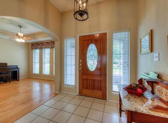 Large corner lot w/trees~nice open floorplan-no carpet here! Extensive tile! 3 bed/2 bath w/office/formal dining. The open plan allows for lots of entertaining w/the family room/kitchen being open. Extensive windows across the back of the home allow for plenty of natural light. Master suite w/separate vanities~large corner soaking tub~separate shower~walk-in closet. Nice size bkyrd w/oversized covered patio for relaxing~great neighborhood amenities~easy access to 183~183A~Ronald Reagan. Leander ISD