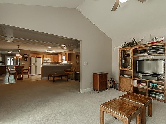 Quality and comfort are yours with this beautiful ranch condo with full basement. You will fall in love with the maintenance free living and the open floor plan. This end unit has 2 spacious bedrooms and 2 full baths and features an open floor plan which is sunlit with lots of windows. The vaulted great room has a beamed ceiling and gas fireplace for those chilly winter nights and opens to an additional family room or sun room with sliders to the concrete patio. The large kitchen offers lots of cabinets and counter space and includes all appliances. The large walk-in closet and attached full bath with walk-in shower complete the owner's suite. The guest bedroom also features a bay window and full bath close by. The bedrooms are located at different ends of the condo which allows extra privacy. The first floor laundry completes your wish list as well as the unfinished basement with another 1400 sqft of potential living space. You'll love living in Rivers Edge with its low maintenance fee of only $151/month. Don't miss out!
