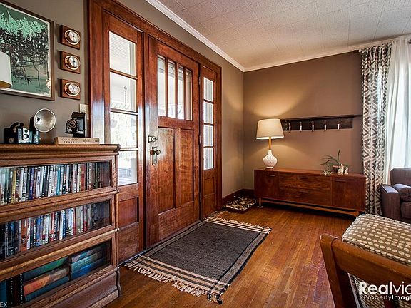 SITUATED ON A CORNER LOT & FULL OF CHARM!  Enter into the living room with original hardwood floors and wood burning fireplace with brick surround.  French doors lead to the formal dining room with bay window and built in work space.  The adjacent kitchen features tons of oak cabinets plus a sun filled dinette that overlooks the back yard.  A convenient half bath rounds off the main floor.  Head through the arched doorway to the 2nd floor where you'll find the master bedroom with walk in plus a single closet.  The 2 additional bedrooms are generously sized and all share the full bath with laundry chute and tub/shower combo.  Above the attached two car garage is a fantastic patio to enjoy nice weather plus there is a fully fenced back yard for kids or pets!  A full basement includes a walk out to the garage.  Updates include water heater approx. 2012, furnace blower motor and newer windows throughout.  This home has tons of character and is move in ready!