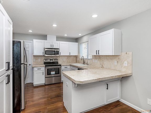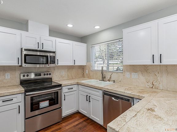 Check out this stunner w/ NEW NEW NEW stainless appliances, 2" blinds, soft-close cabinet doors & hardware, paint & trim, carpet/pad, sinks & fixtures, fence, and SO MUCH MORE! Refinished hardwoods w/ gorgeous herringbone design, recessed LED lighting, full-height tile backsplash, pantry, walk-in master closet. Secure RV/boat parking. XL yard w large covered deck, patio, shed & landscaping. CENTRAL A/C! Close to MAX! [Home Energy Score = 8. HES Report at https://rpt.greenbuildingregistry.com/hes/OR10058759]