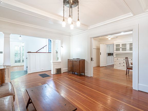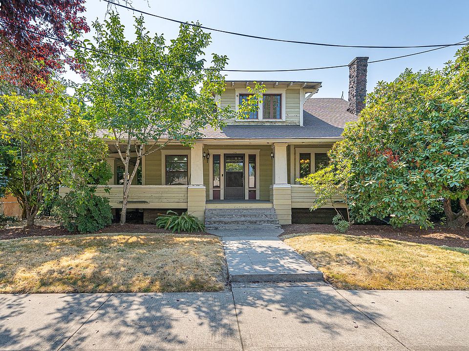 Welcomed by the gorgeous wrap around porch, experience the grandeur of this 1914 classic craftsman located on a corner lot in the heart of historic McMinnville. Featuring original light fixtures, stately fireplace, beautiful built-ins, pocket doors, high wood wainscoting, & original hardwood floors. Primary bed & bath w walk in shower on the main, w/ 3 lg light filled bedrooms & bath upstairs. Separate living quarters in the basement. Mature trees/plantings surround private yard. Walkability A+!