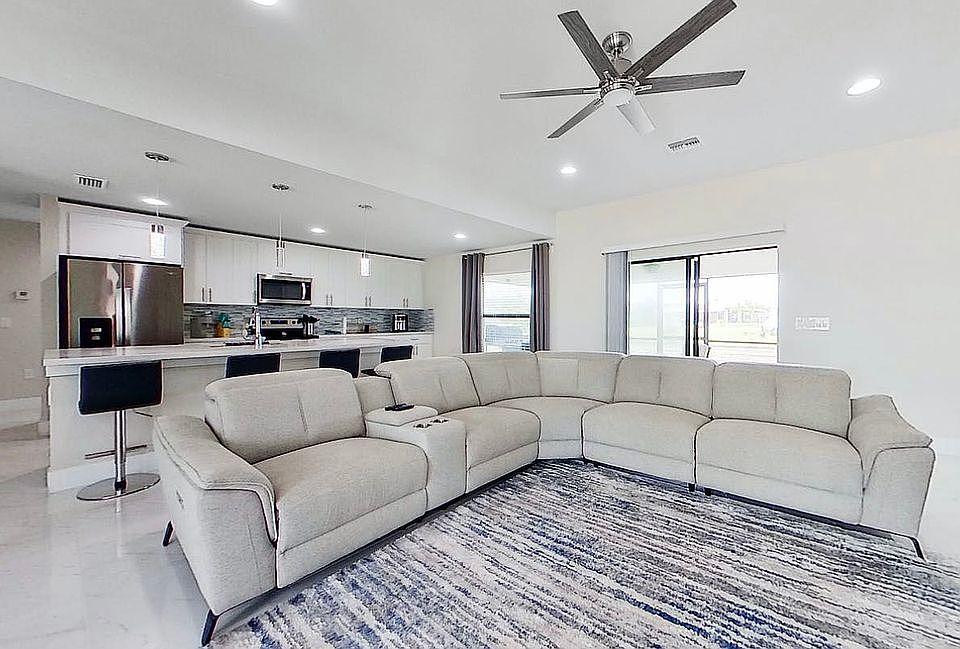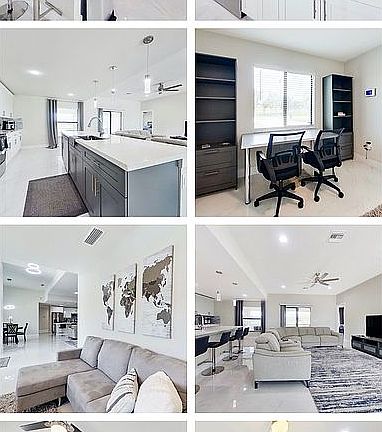 New construction custom built 3 bedrooms plus office den and 2 bath with canal with room to add a pool. This home offers an open floor plan with many upgrades. Some upgrades are 36" soft close wooden cabinets, all quartz counter tops in kitchen, laundry, bathrooms, and window sills, 24x24 porcelain tile throughout the home. Celine fans, screened in lanai for BBQ area, Garage painted with epoxy. Boat ramp is only steps away, house is located across park.