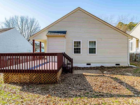 Beautiful ranch with split bedroom floor plan less than 10 mins from downtown Wake Forest!! Cathedral ceilings and spacious family room, like new Samsung appliances & updated kitchen with plenty of cabinet space! Huge master suite, walk-in closet & private bath. Freshly painted, new carpet and hardwood flooring installed through most of home. Large deck and private wooded backyard and patio to enjoy all the space you have to play outdoors!!!
