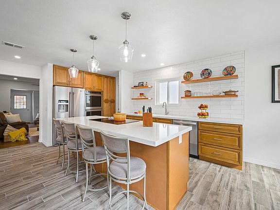 Welcome home to your coastal oasis! This beautifully remodeled twin home is tucked away at the end of a peaceful cul-de-sac in Pacific Serena, a highly desirable Encinitas community just 1.5 short miles from Downtown Encinitas & Moonlight Beach. With a redesigned floor plan you will enjoy an open and elevated kitchen with custom coffee-glazed raised panel cabinets complimented by White Glacier quartz countertops, an oversized island with a built-in range, stylish open wood shelving, full subway tile backsplash, designer pendant lighting, and stainless steel appliances. The wood-look ceramic tile flooring carries throughout the home and offers easy care for sandy beach toes. The spacious primary suite is your private sanctuary with a luxurious remodeled spa-quality bathroom. A previous addition added a third room that functions as a perfect office or bedroom overlooking the blooming lemon tree in the rear yard. With one of the largest backyards in the community, you will look forward to outdoor dining, entertaining, gardening, picking fresh lemons & oranges, and enjoying sunsets overlooking a tree-studded fence line. Every inch of this home shines with pride of ownership, and the upgrade list is extensive with everything from recessed LED lighting to a brand-new garage door, and dual pane windows. Come explore the beauty of this home and its desirable location with access to the Encinitas Ranch Trail system and close proximity to shopping, Encinitas schools, dining, and more!!