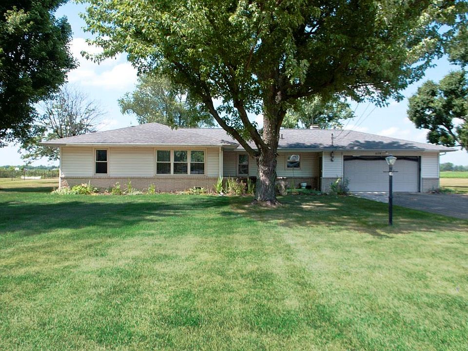 Country Livin' without the Drive! - South Madison Community Schools! - Wonderful Three Bedroom Ranch Home on .88 acres with TWO GARAGES! The 2-Car ATTACHED Garage offers space for workshop w/cabinets that stay. PLUS: The 2-Car DETACHED Garage for vehicles, mowers, equipment, and storage! Three (3) Bedrooms / 1 Full Bath / FORMAL Living Room and DEN. Kitchen features beautiful cabinets and opens to Dining Room. Oven, Range, Refrigerator stay. HARDWOOD floors beneath carpets! Vinyl WINDOWS, too! Unfinished BASEMENT (accessed through garage) was once a finished family room. Could be finished as man-cave, finished for family room, or extra storage rooms! Perennials in landscape offer year round enjoyment. Don't miss the exceptional opportunity!