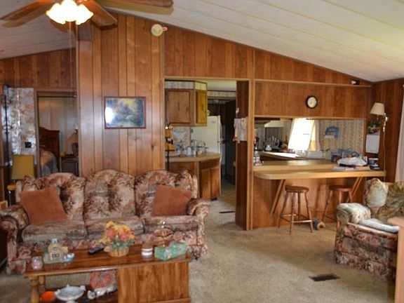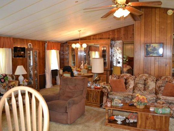 Charming Double wide that sits on 7.5 Acres. Offers lots of privacy. Home is secluded from the road. Open floor plan, with Fireplace, 3 bedrooms and 2 full baths. Stove, Refrigerator, Window A/C units, Auto Door on Garage will convey with the home.