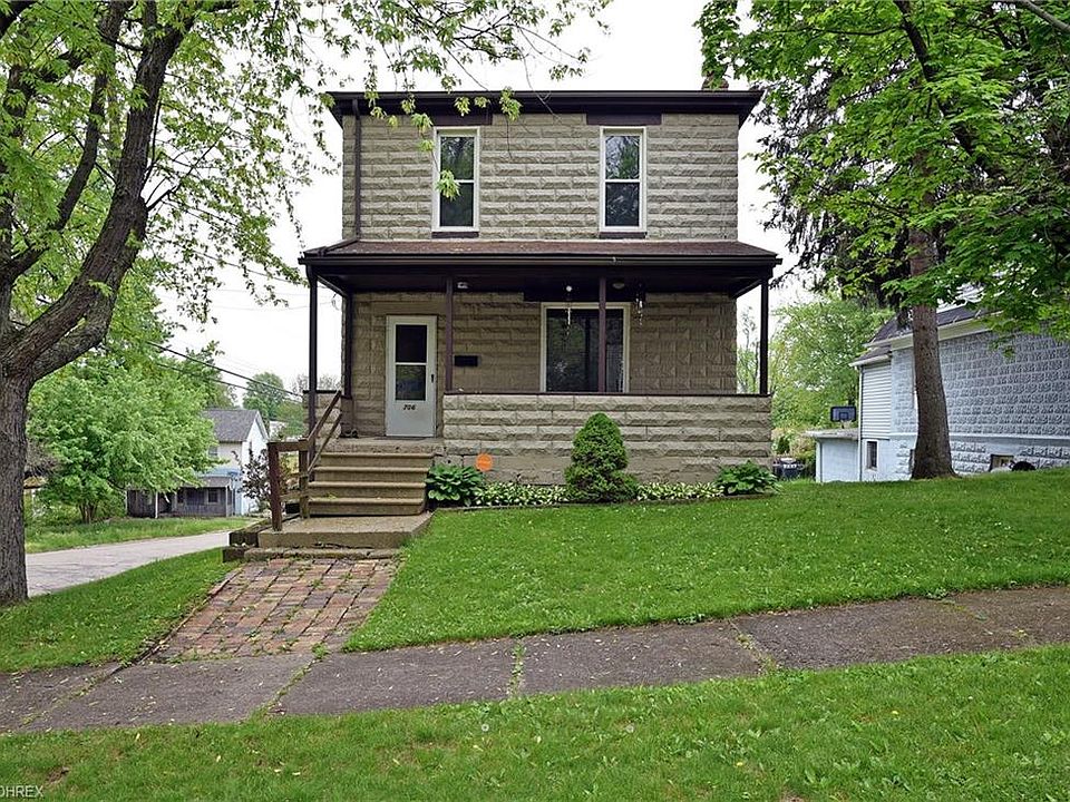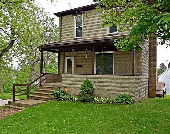 Very well maintained all block construction home being offered for sale. This home features 2 good size bedrooms, 1.5 baths, large eat-in kitchen with appliances, nice size living room, rec room in the lower level, vinyl replacement windows, full front porch, covered rear patio, and a two car detached garage all on nice corner lot. This is a great home at a great price!