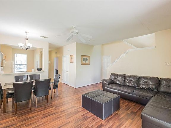 PRICE DROP! Beautiful large corner unit in the Regal Palms. Brand new Laminate flooring throughout both floors. Large lockout master bedroom downstairs with its private bathroom that can be rented out for extra cash. Large master bedroom upstairs as well with two other bedrooms. Great size balcony on second level as well as a front and back porch that fits a nice seating arrangement. This unit comes fully furnished. All original furniture/appliances replaced since last purchase. There are very few end units available in the Regal Palms and this one is a MUST SEE for a fantastic price! Schedule your showing today! The Regal Palms is a beautiful resort 15 mins from Disney and is a serene residential community as well as a short term lodging destination rated 4+ stars on all rental platforms and conveniently located within minutes of shopping/restaurants. The resort features an expansive clubhouse with a NEWLY RENOVATED Bar & Grill, Fitness center, sauna, steam room, hot tub, arcade, ice cream shop, and more! The spacious resort pool pavilion includes a water slide, lazy river, zero entry pool, outdoor jacuzzi, sand volleyball court, and a pool side tiki bar for poolside cravings. There is a full service SPA onsite as well as a ticket concierge desk for discounted attraction tickets. Schedule a live showing today and don't miss a chance to own this beautiful unit!