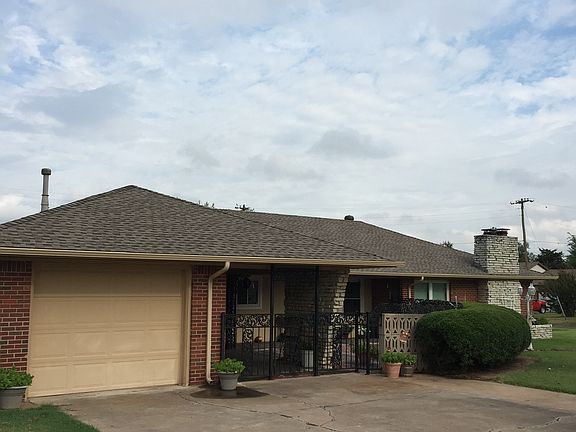 This 4 bed 2 bath home has lots of updates. Mother-in-Law plan. Privacy patio in back and covered privacy porch in front. All the windows have been replaced throughout the house with double pane, tilt in sash for easy cleaning. 2 Living Areas with Gas Log Fireplaces, one has a remote start. The Mudroom/Utility Room has a walk-in shower and sink with lots storage cabinets. A New Roof and 6 foot Stained Privacy Fence was installed in 2013. This house has an Attic fan, Ceiling fans in all rooms. Wood blinds, Walk In closets, Huge Safe, Garage door lift. Storage building/Workshop in back. Lots of storage. Separate entrance from back patio to bedrooms. Large Corner Lot. Seller is offering a Home Warranty. Selling "As Is" CONTACT: Christy or Gayla at (405) 317-3265 or (405) 514-0415