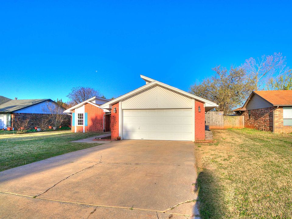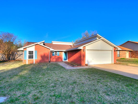 CUTE, CUTE, CUTE brick home in Quail Flight Addition in Tecumseh! Wood burning fireplace in large living room with built in bookshelves & tall slanted ceiling, all opens to dining area and bright kitchen with newer countertops, paint & walk in pantry. Home has lots of storage, newer wood laminate flooring, some tile updated hall bath, newer light fixtures, windows & roof installed in 2018. You will love living in this neighborhood with it's own play ground for the kids and being in culdesac there is not a lot of thru traffic. Good size fenced backyard with lg patio, storm cellar and storage building.