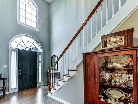 This charming well-maintained home boasts 4 bedrooms, 2.5 baths and NO HOA. The grand 2-story entry features Engineered Silent Hardwood floors. Brick front home displaying floor to ceiling wood windows to let lots of natural light in, two porches and a true brick fireplace with gas inserts. This home has 3 walk-in closets with 2 located in the Master bedroom. Master has a stunning trey ceiling and large master bath. Located in a quiet cul-de-sac on one of the largest lots in the subdivision. Minutes from the new hospital, interstate, shopping and restaurants. Fully finished basement with Home Theater, bar, and two other rooms. Full bathroom in basement with shower.