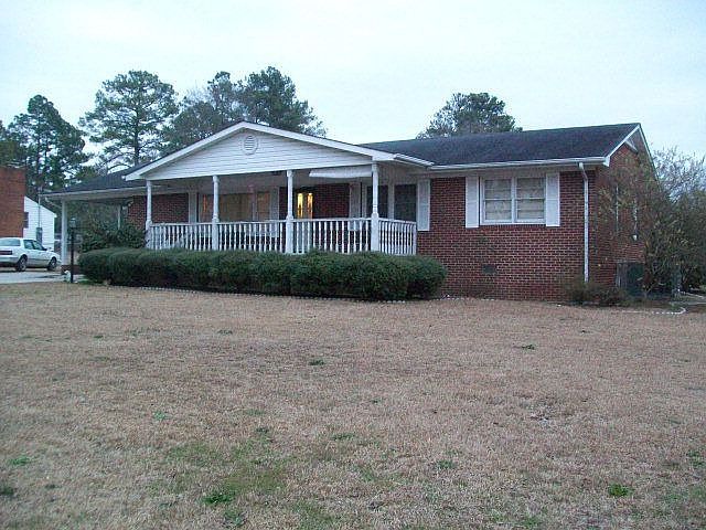 Nice brick home in the heart of Rockingham and close to everything. Enjoy a quiet evening sitting on the covered front porch. Nice pine cabinets in the kitchen. Large workshop/building in the back has electric and a bathroom. Two small buildings convey with property.