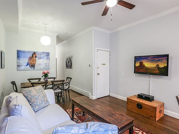 Short term rental only. Fully renovated first floor 1-bedroom unit with PRIVATE backyard and brand new weather resistant Trex deck available for rent December 1st, located in the heart of Hoboken's midtown. This property features an open layout with high ceilings and a custom kitchen with dishwasher and radiant floor heating. The bathroom was fully renovated featuring white carrara marble and a unique, custom painted sink basin. The bedroom has soundproofing features for a good quiet night's sleep. Hardwood floors throughout, custom closets, additional storage in basement and washer/ dryer in unit. No detail has been spared!