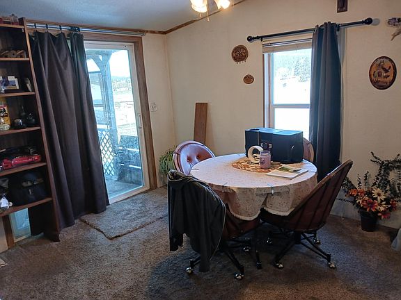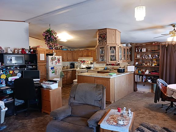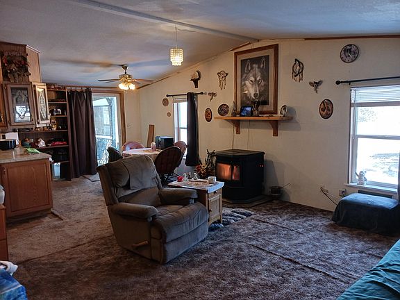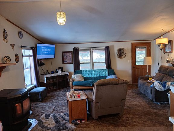 Private location yet convenient to town with over 5 acres of fenced pastureland with some trees. Beautiful 3 bedroom, 2 bath manufactured home with covered front and rear decks. Enjoy the quiet evenings in the hot tub relaxing while enjoying the mountain and valley views. Pellet stove warms the inside of the home with open floor plan and spacious kitchen with lots of storage. Besides a carport there are 2 storage sheds and a 1 car garage and lean to. Chain link fenced area for your animals as well.