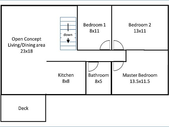 Own your home in about 15 years with owner financing. Single family home on nearly 1/2 acre level lot. This 3 bedroom, 1 bath home has an open concept floor plan with a deck off the dining area. Contact the owner to set an appointment to see this move-in ready gem.
