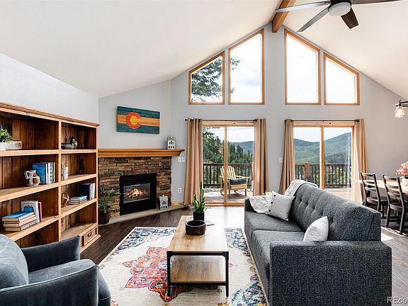 Welcome to this stunning updated home in Evergreen! Perched on the mountainside on 1.23 acres, this property provides panoramic views of Colorado’s Rockies. Soak in the views and spot the eagles flying by from one of the three expansive decks or cozy up by one of the two fireplaces and watch the snowflakes fall in winter. The main floor has three bedrooms and a fourth lies in the basement with its own bathroom. The primary bedroom has deck access, views, and an updated en suite bathroom with dual sinks and solid pine barn door. The kitchen stretches to provide ample counter space and storage. A fun flex space in the basement is great for a home gym and storage. The yard includes a variety of native grasses and a charming garden area, offering both beauty and practicality. Located just minutes from downtown Evergreen, this home provides easy access to shopping, dining, and recreational activities. Whether you enjoy hiking, skiing, or simply savoring the tranquility of mountain living, this property offers it all!