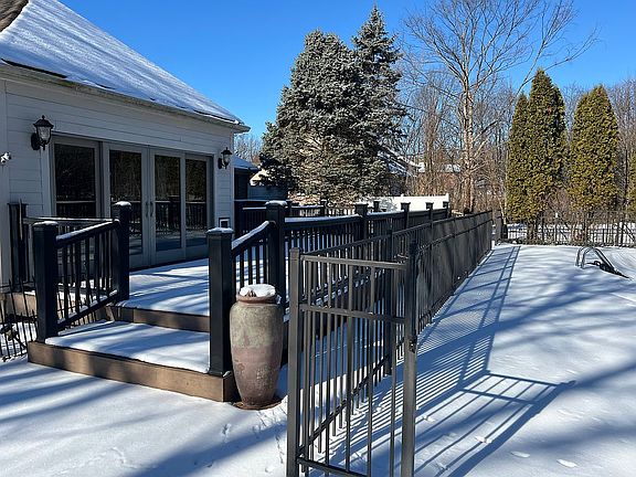 Feel like you're on vacation every day! Home includes gourmet kitchen, 17x15 sunroom and refreshing pool. In the winter- entertain with the hot tub, sauna, LL theater room, bar, 17x15 workout room (could also be guest room with full bath). Fencing around pool and yard is aluminum.