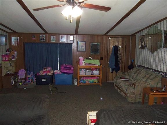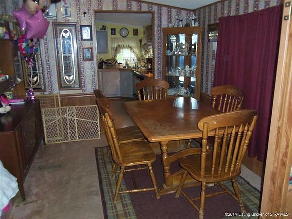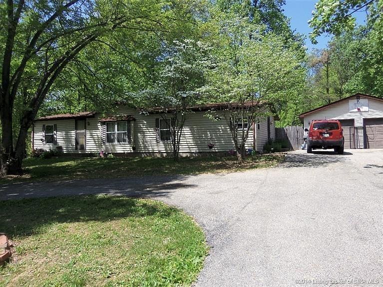 3 bedroom, 2 bath manufactured double-wide on 1.23 acres. Split bedroom floor plan, eat-in kitchen, formal dining. Pantry in kitchen. New floor coverings in kitchen & dining. Recently painted kitchen. Newly landscaped. Detached 2+ car garage with workshop area and concrete floor. Above ground pool 4 1/2 x 18. ADT Security System not hooked up. Security/cameras are. Needs some TLC. Only 15-20 minutes to Sherman-Minton bridge. Seller is providing a 1-yr HSA Home Warranty.