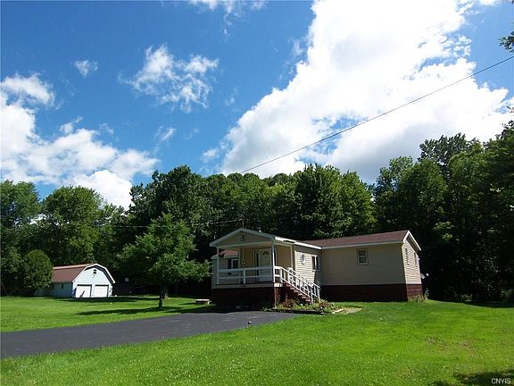 This Ranch country home is nestled on a large lot of 2.73 +/- acres. Big kitchen with first floor laundry area and large table area, dining room, large living room, 2 bedrooms, full bath, covered rear porch overlooking a great yard and a HUGE detached two story garage with workshop and 3 overhead doors.