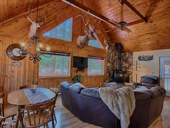 Beautiful and amazing cabin tucked back in the Pinetop Lakes Country Club. TRUE PRIDE of Ownership. Close to National Forest & trails. This adorable cabin is what you have been waiting for with 3 beds - 2 baths PLUS a loft area. Great Room has vaulted ceilings and T&G w/ beams + large windows for lots of light. Lovely wood laminate flooring w/ a stone hearth w/ efficient wood burning stove to heat the whole cabin if desired. The kitchen is charming w/ granite counter tops & a breakfast bar. The bathrooms are remodeled w/ granite too. There are 2 beds & 1 bath down & the large Master is up w/ a big walk in closet and Master Bath. The loft is just outside the Master. Laundry room as a utility sink & cabinets and coat rack space with it's own door for a mudroom. READ 'MORE'