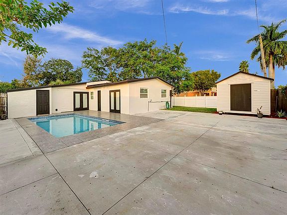 Spectacular single-family home featuring 4 bedrooms and 3 bathrooms. This residence has undergone a total renovation, showcasing a modern concept kitchen with quartz countertops, stylish backsplashes, and stainless-steel appliances. Revel in the contemporary aesthetic of tiles and hard floors throughout. The bathrooms have been thoughtfully updated, and convenience is elevated with a full-size washer and dryer. Enjoy the benefits of a tankless water heater and central AC. The property boasts a fenced, spacious backyard with a pool, large paved area, and a shaded retreat. Ideally located near shopping, Publix, dining, and major roads and highways. No HOA completes the appeal of this exceptional home.