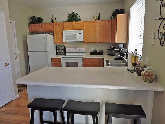 Bright sunny 2-story 3/2/2 with central air, fenced back yard, sprinkler system, recent paint inside out. Open main-level floor plan with wood laminate flooring, vaulted living room, dining area with sliding door to back patio, kitchen counter/bar, large pantry, appliances included. Upstairs, master suite with walk-in closet, soaking tub, double vanity, plus 2 more spacious bedrooms and a hall bathroom. Unfinished partial basement plus crawl space provides lots of storage, also laundry area and mechanical. Trash service is included. Convenient Powers location with easy access to downtown, military bases, shopping, schools, parks. NOTE: Discounted rent of $1,350 for two months, then $1,425. For more info or to schedule a showing: Mertz Property Management 719-282-3645