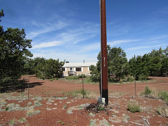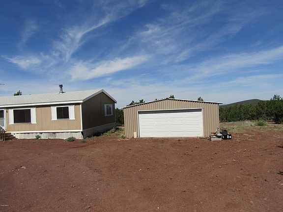 Great 1.48 acres with 3 bedroom/2bath manufactured home. Needs some fixing up but priced sell. 2 car detached garage, great views with tall junipers and pinon trees. Most of acreage in behind house which makes it very private. County maintained roads, fire station close.