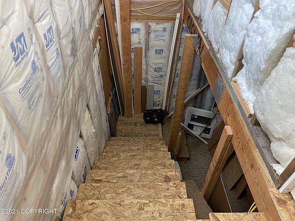 Looking for an affordable home in the Palmer area. Here is the perfect home with mountain views! This charming log-framed chalet style cabin is livable, but needs some finishing touches. Has electric, a water holding system for running water and an engineered septic system. Wood stove heat.