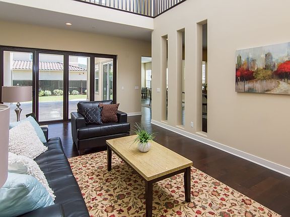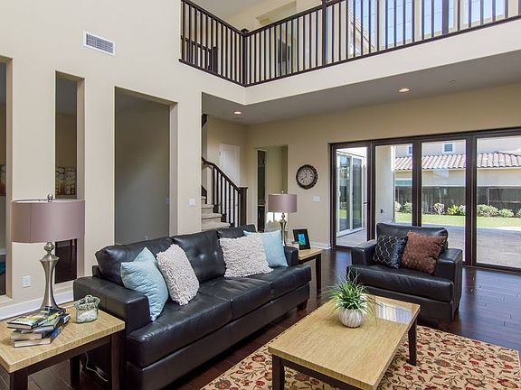 Located in the superb neighborhood of La Costa Oaks, this grand 5 bed 4.5 bath home is sure to amaze. Enter this two story home on lovely hardwood floors that run throughout the lower level, with the dining room opening up right off the front door. Continue into the wide open family room and kitchen that is perfect for entertaining. Find quartz counter tops w/ ample space for meal preparation, stainless steel appliances including double oven, a large island with counter seating and espresso cabinets. The family room features a cozy fireplace and lots of windows for natural light to pour in. Enjoy the best of indoor/outdoor living with a spacious tile courtyard centered in the middle of the floor plan with access from the dining room, family room, and hallway to bedroom. Downstairs also features an office off the entry, powder room and a bedroom with en suite bath. Make your way upstairs to find the master suite, three guest bedrooms and a bonus room. The spacious master suite features access to balcony, walk-in closet, and in the master bath find a stone surround soaking tub, stone counter tops, separate his & hers sinks, vanity, and walk-in shower. The backyard is great for entertaining with expansive manicured lawn. Take a swim at The Splash or enjoy the near by walking trails. Additional features include: recessed lighting, two story ceiling in dining room, upgraded sliding doors