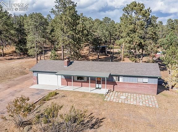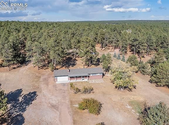 Looking for your own slice of Colorado with a rural setting but close to town Then look no further! This 3 bedroom/2 bathroom/2 Car "Rancher" sits on a private and peaceful 3.28 Acre lot in Black Forest with meadow/pasture areas in the front and middle of the acreage and the back of the acreage is forested with mature pine trees. There is partial perimeter & cross fencing for horses. The neighborhood has it's own horse trail system! Additionally, it is close to Black Forest Section 16 and Black Forest Regional Park for horseback riding on a series of trail systems. The neighborhood does not have an HOA. The water is through a community district, the home is on natural gas (not propane) and the septic has already been inspected. The home has an open and bright floor plan with tons of natural light and the front of the home is South facing. The home is all one level with a large living room w/ wood burning fireplace, dining area, kitchen, the master bedroom w/ a private half bathroom, the second and third bedrooms, a full bathroom, and the laundry area. This home is true Main Level Living with all living areas on one level and a large crawlspace (parts of which are tall enough to stand) for storage that is accessible through an exterior staircase. A new roof was installed in 2021, the furnace has been serviced and inspected, the home has wood floors throughout, a traditional front porch, and large back concrete patio. Great location in Black Forest off Black Forest Rd, but only 5 minutes to Woodmen Rd with shopping, dining and entertainment nearby. With a beautiful, rural setting this is Colorado living at its' best!
