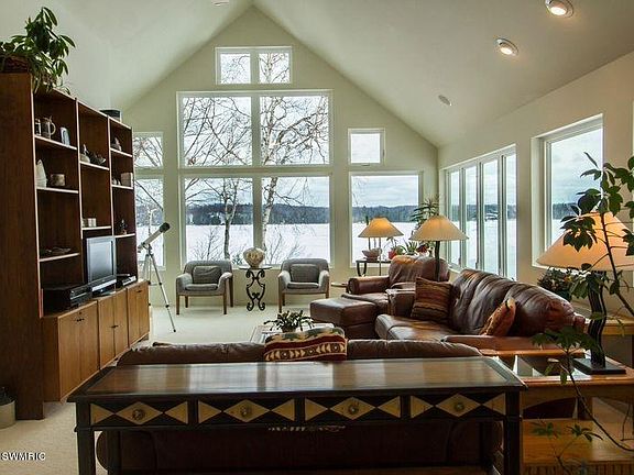 Stunning 3 bedroom, 2.5 bath contemporary lakefront home with commanding views of Hamlin Lake. Relish the panoramic view of the sand dunes to the forest from the lakeside windows.
