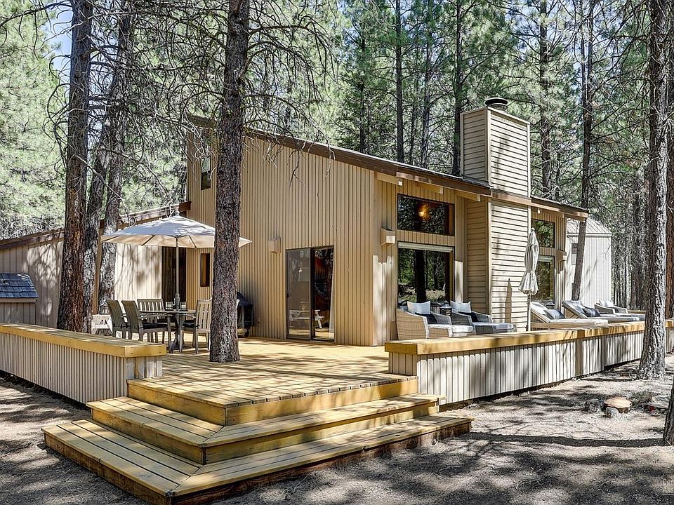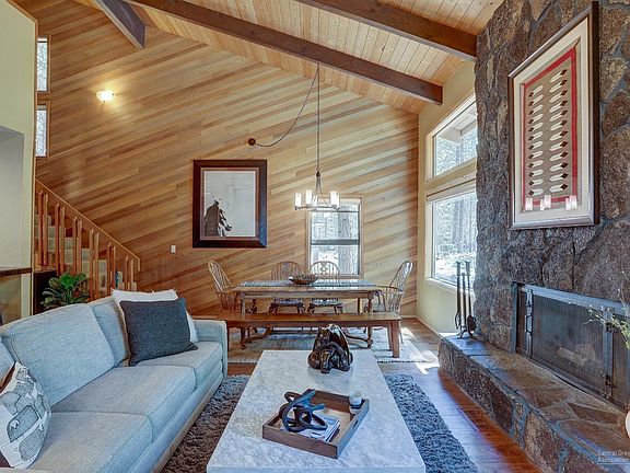 Desirable remodeled Black Butte Gem w/a Detached garage + extra parking pad..All 3 bedrooms down and Master Suite w/Vaulted Ceiling and Shower is remodeled using popular Pebble Floor. Hottub sits within the wraparound deck on this approx .41 acre treed lot. Tranquil setting and conveniently located near Glaze Meadow Rec Facility and just off the bike path. Granite and Stainless Kitchen w/eatbar. Vaulted Wood panel ceilings, large windows and floor to ceiling stone Fireplace w/sitting hearth. Open Great Room layout plus upstairs Loft w/hideaway bed. . 2 remodeled baths., Skylights, Wood Floors, Metal Roof.