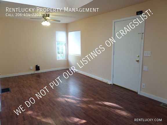 This is an adorable home in a great neighborhood! Don't wait to check out this 3 bedroom, 2 bath home. Owner recently installed granite counters, new cabinets and new stainless steel dishwasher in kitchen. Fully fenced yard, and washer and dryer included. Tenant to pay all utilities, including a $450 flat fee for electricity, water, garbage and sewer. Tenant to also pay a $150 yard maintenance fee, unless tenant agrees to mow and maintain the lawn on a bi-weekly basis. NOTE: The MIL unit (garage) is for owner's use only. Tenant is not allowed to access or block the area near the MIL. All tenant parking is street parking only. Make an appointment to see this home today! BEWARE OF SCAMMERS! If you see a Craigslist OR Facebook Marketplace ad for this house at a lower price or an ad that does NOT mention RentLucky Property Management, SCAMMERS have posted the other ad. RentLucky does NOT put our listings on Craigslist NOR Facebook Marketplace. TIPS & TRICKS to a Successful Leasing Experience with RentLucky! ARRANGE A TOUR: Please reply to this ad, which emails our Touring Representative. RESPONSE TIME: We will answer all leads in the order received, and we do our best to respond within one business day. We respond to ALL inquiries, please be patient. We have a 'no-bullying' policy, and zero tolerance for verbal abuse towards our staff. $55 per adult over the age of 18. Each person must fill out a separate application; there are no joint applications for married persons or co-signers. We DO NOT answer screening criteria qualification questions over the phone. ABOUT PETS: Most landlords will consider pets with additional deposit. Pet fee is $45 per month. MOVE IN COSTS: A retainer deposit equal to one month's rent is required to take property off the market. This will be applied to your first full month's rent. Second month will be pro-rated less the move in days. Security and pet deposits are required at move in. Security deposit is equal to one month's rent. $350 onboarding fee (per group, not per individual, if there are multiple applicants in a group). FOR APPLICANTS ON CITY OF SEATTLE PROPERTIES: Per Seattle's Fair Chance Ordinance, SMC 14.09, landlords, property managers, screening companies etc. are prohibited from requiring disclosure or asking about criminal history. We will not pull criminal history on any applicants for Seattle properties, therefore we will not reject an applicant or take adverse action based on arrest records, conviction records or criminal history, except for sex offender registry information. However, we may only take adverse action in regards to sex registry information if the conviction occurred when the person was an adult and only if there are legitimate business reasons as described in subsection 14.09.025.A.3, 14.025.A.4 and 14.09.025.A.5, and subject to the exclusions and legal requirements in Section 14.09.115. SEATTLE PROPERTY MOVE IN COSTS: Security deposit, pet deposits, non-refundable fees and last months rent may be paid in installments per Seattle Municipal Code 7.24.