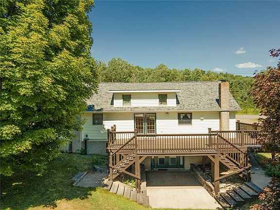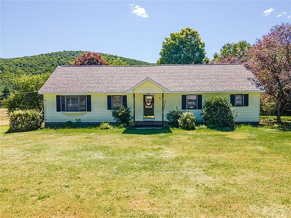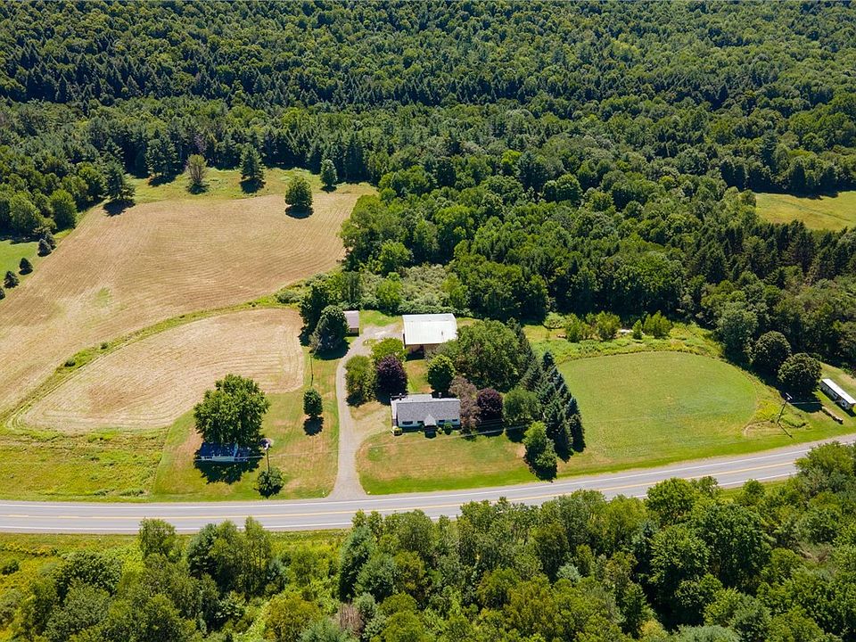 Big Bang for your buck in the Northern Catskills! Set on 21+ acres with a mixture of fields and woods and 826 feet of frontage on the Kortright Creek. Great hunting and fishing. Custom 3 br, 2 fb, ranch with 3200 sq ft of finished living space. Loads of upgrades. Custom kitchen with island and pantry. Fun loft bedroom with spiral staircase access. Full finished lower level with walk out has a massive family room with wet bar/kitchenette and a beautiful full bath with oversized Jacuzzi style tub. Storage room, root cellar/wine cave and office space that could be converted to bedroom if needed. Thermal Storage high efficiency heat and a great pellet stove in the family room. 57' x 57' two story heated garage complete with water, it's own septic system and half bath. Originally built as a large truck repair and body shop, it will hold anything and everything you've got! Finished space with apartment potential on the second floor that could have VRBO possibilities. 42' x 24' barn that would be perfect for horses or other livestock. Top it all off with a 18' x 30' party house with it's own septic, wet bar, half bath, and very large fire pit outside for the ultimate entertainment space.