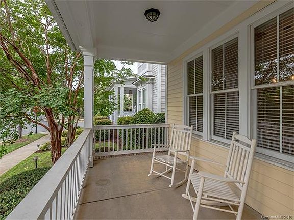Relax on your rocking chair front porch in highly sought after Blakeney Greens neighborhood. Quality construction by Saussy Burbank. Hardwood floors, high ceilings & beautiful moldings throughout. KT has 42" cabinets, granite countertops & tile backsplash. Raised vanity in MBath. 2" blinds. Rear patio. 2 car detached garage w/storage above. Exterior painted 2014. Walking distance to Blakeney Shopping Center-shops. restuarants, grocery. Neighborhood pool. Walking trail at rear of neighborhood.