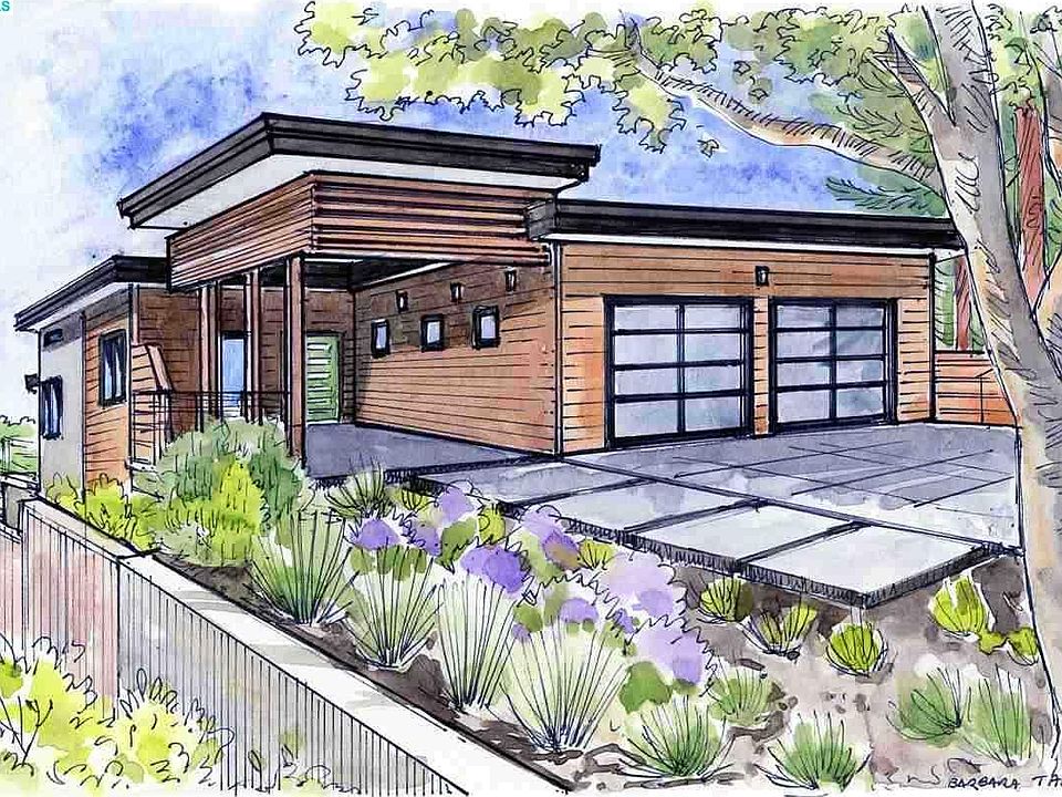 Think 'Dwell' magazine! New Modern w/big views & level yard! Hip and yet amazingly family friendly. Sensational kitchen w/striking stone island, light-filled great room, stunning concrete work & artistic design elements. Family room, fab Master + 3 BD's down w/easy access to yard. This rocks!