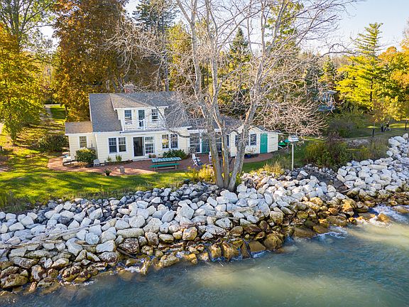 Looking for the perfect weekend get-away, lake home, or remote work site? Don't miss this great home on the shores of Lake Michigan. Classic Cape Cod built for coastal living. Elegant kitchen with all the whistles & beautifully updated bathrooms lend an air of casual sophistication. From the cheery living room leading to the patio with fire pit to the master bedroom balcony, you'll always find a breathtaking view of the lake. Breezy, laid back screened-in porch & attached bunkhouse add to the ambiance of this dreamy lake home.