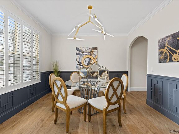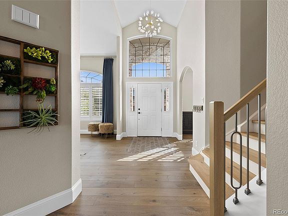 The Castle Pines home you have been waiting for AND on one of the most coveted streets! When arriving at this home, you will notice the lime washed brick, the darling window boxes, the new garage doors and the new wood shutters - curb appeal at its finest! Upon entering this home, you don't know which way to look - do you check out the gorgeous wide plank floors, the herring bone brick inlay, the decorative wainscoting in the dining room, the gorgeous staircase or the fabulous light fixtures? As you make your way toward the kitchen, you will notice the main floor study with it's built-in shelves and french doors, the family room is sure to wow you too - the cozy fireplace and the accent wall are sure to please. The spacious kitchen with a walk-in pantry, large island for entering or serving a quick meal, beverage refrigerator, double ovens, and a great space for a kitchen table. As you make your way to the second floor, you will see the beautiful wide plank wood floors in the hallway and primary bedroom. The primary bedroom is a 10! The 3 sided fireplace is the perfect accent to the most magnificent primary bathroom. The grand shower is sure to wow! Soak in the free standing tub after a long hard day. Three more secondary bedrooms with two additional bathrooms is perfect for family or guests. The walkout basement is sure to please - workout room, large recreational area, spectacular bar, additional bedroom, bathroom and a playroom with the perfect hideout under the stairs! Don't forget to check out the new furnace and A/C! The outdoor space is top notch. The spacious composite deck with, a level yard to play in, swing for the kids and space to sit by a fire pit make this house hard to beat! Walking distance to school, trails and the community pool and tennis courts. Welcome Home!