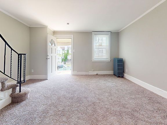 This 870 sq. ft. home in Upper Darby, PA offers a blend of vintage charm and modern functionality across two floors. The property boasts four bedrooms, including a primary bedroom of 150 sq. ft., providing ample space for a family or those seeking extra rooms for work or hobbies. The interior showcases a mix of flooring types, with plush carpeting in some areas and gleaming hardwood floors in others, adding warmth and character to the space. The home's layout includes two living rooms, offering versatility for different lifestyle needs. The kitchen features honey-toned wooden cabinetry, white appliances, and a tiled backsplash, creating a functional cooking space. A standout feature is the vintage bathroom, complete with a distinctive turquoise bathtub and matching tiled accents, adding a unique retro touch to the property. Architectural details such as a white-tiled fireplace in one of the living areas and classic radiators throughout the home contribute to its charm. Large windows in various rooms allow for ample natural light, while features like ceiling fixtures and window treatments add to the overall ambiance. The property's mix of open spaces and cozy rooms, coupled with its interesting blend of vintage elements and modern necessities, makes it a distinctive offering in the local real estate market.