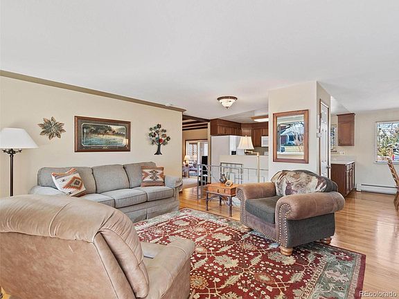 Come enjoy this outstanding well-kept, updated, comfortable home, ready to move in! Brick and stone, wonderful curb appeal, beautifully landscaped front and backyards with custom built patio highlights the lovely backyard! Two planting beds for gardens or flowers. The Stunning Mountain View’s during every season make this a special Colorado home. New owners will enjoy this ranch style with a partially finished basement! The main floor boasts a semi formal living room that flows seamlessly to the dining room, kitchen, and family room. The primary bedroom is large and bright and the ensuite has been updated with a 3/4 walk in shower. Two additional bedrooms share a well appointed hall bath. Downstairs guests will love the sleeping area that is carpeted and set up for private guest quarters along with a half bath for convenience. Additionally,, there is a very large unfinished area for storage and future build out. Many of the extraordinary features include, newer windows, flooring, boiler, and top-of-the line swamp cooler. The additional RV parking and new concrete driveway complete the front of this great home! Easy access to parks, trails, and I 70. This house will not last!