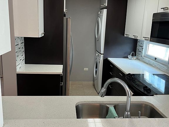 Modern Beach Front Condo Steps from the Beach. Its conveniently located in Isla Verde Pine Groove beach. It has a spacious living area a fully equipped kitchen with dishwasher. Building equipped with partial electric plant(communal areas) security guard on site 24/7 , pool, modern Gym, Tennis Court, and with direct beach access.