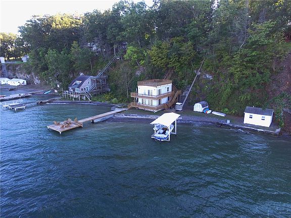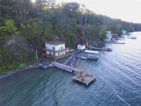Wake up to the views of a lifetime with 155 feet of your own lake frontage. Nestled on the west side of Cayuga Lake sits this beautiful 4 season home. The two wraparound decks, and a third story full platform veranda take you to a place of comfort and relaxation. This property has even more to offer with a private guest suite, which includes a full bath. A full basement, Two permanent docks, one with a built-in covered boat hoist. With room for nine cars, parking won't be an issue when the friends and family come to visit. The cargo lift is built to last with a lift capacity of 800 pounds. This turn key home comes fully furnished. The boat will be removed if requested or can be included in the sale. Jetski not included but the jetski hoist stays with the property. The septic system has been pumped, inspected, dye tested and fully passed. Survey has been completed. Do not miss this opportunity to own your slice of the Finger Lakes.