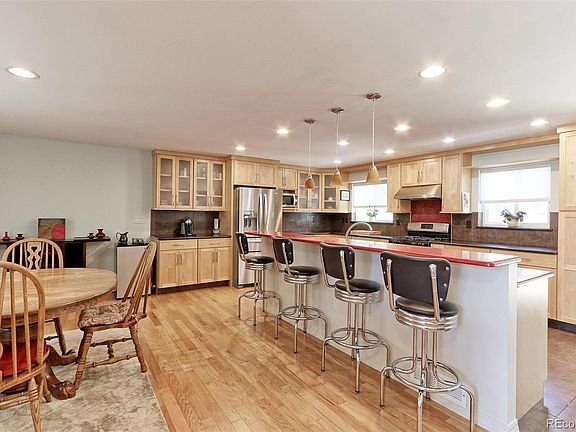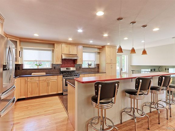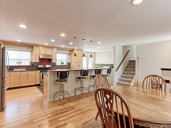 Stunning Arvada home in like new condition. Open design greets you at the entry and certainly has the "WOW" factor. The gourmet kitchen is every cooks dream - extensive cabinetry and solid surface countertops, custom back splash, hardwood and tile floors, and stainless steel appliances. The kitchen overlooks the family room and back yard. The family room has a wood burning fireplace for those cold Colorado nights and adjoins the laundry room and half bath. Upstairs there are 3 bedrooms and 2 remodeled baths. All the bedrooms have ceiling fans, upgraded doors and closet organizers. The primary shower has been enlarged and was updated last spring. The carpet throughout the home has been updated. In addition the popcorn ceiling has been removed and newer window coverings added. New kitchen refrigerator and air conditioning in 2021. Enjoy the updated back yard this summer on your deck or flagstone patio or playing catch on the newer sod with sprinkler system. This home is close to many parks and the Apex Rec Center.