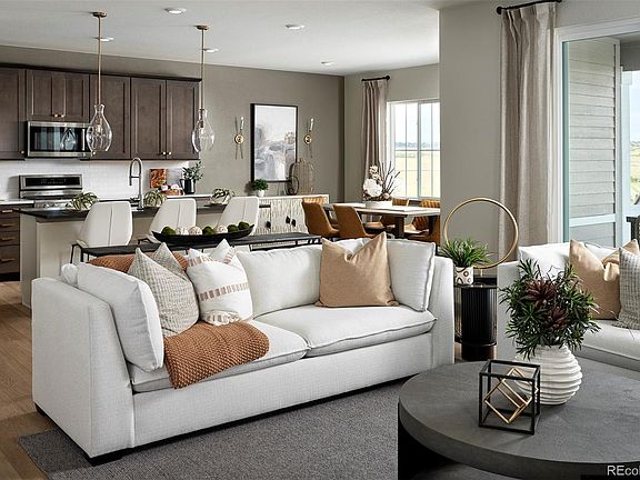 Walkout Finished Basement, Backing to Open Space! Situated in a prime corner location within a cul-de-sac and nestled against open space, this home offers a premier setting. Take advantage of the breathtaking backdrop from the covered deck. Inside, indulge in the high-end contemporary design featuring quartz countertops, white cabinetry, KitchenAid stainless steel appliances, a fireplace, and a sleek horizontal metal stair railing. Enjoy ample space to relax or entertain with an upstairs loft and a finished basement. Located in the desirable new community, The Canyons. Enjoy the many amenities including the Exchange Coffee house, resort style pool, numerous parks and miles of connecting trail systems. Plus additional amenities coming soon. The Canyons has HOA and Metro District monthly fees/dues. The HOA is $138.75/month and the Metro District is $30/ month. Taxes are TBD - taxes shown are an estimated at approx. 1.21% of purchase price.