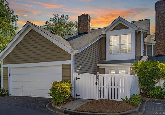 Spacious 3BR / 2.5BTH end unit with 2 car garage and Master down with 2 outdoor areas located in ideal Southpark location in The Gates at Quail Hollow. Beautiful hardwoods greet you as you enter the 2 story family room with gas fireplace and built-ins. Kitchen has freshly painted kitchen cabinets and tiled floor with connected patio space. Upstairshas 2 BR and full bath.