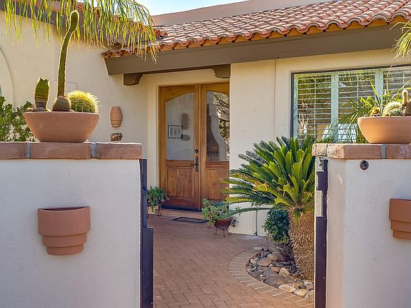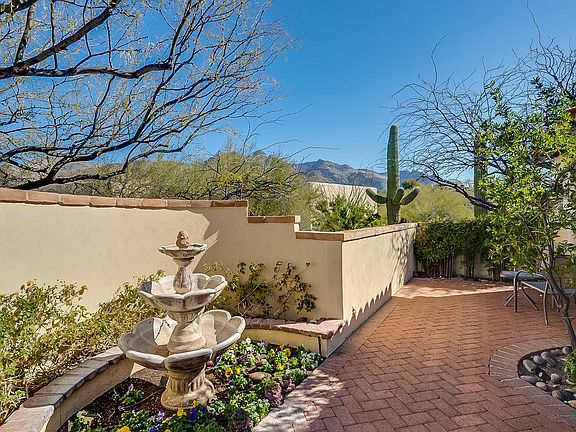 * VIEW VIDEO: https://az.movinghometour.com/22007589_Tucson%20MLS * Looking for stunning City and Mountain views ?Look no further.From the moment you walk into the lush front courtyard area, a peaceful feeling surrounds you.This beautiful hillside home features open floor plan with 4 spacious bedrooms & 3 baths, impeccably maintained with saltillo tile & carpet flooring. Beautiful high ceilings, large windows with ample light.Delightful outdoor gardens both in front & back shaded by lovely mesquite trees, include citrus trees & natural desert vegetation. Master bedroom features include private library area, french doors leading to patio & spa.For afternoon relaxing the extended patio offers serenity & privacy, overlooks the city, features gas bbq, fountain for many hours of enjoyment. This is a home you'll be proud to call your own.