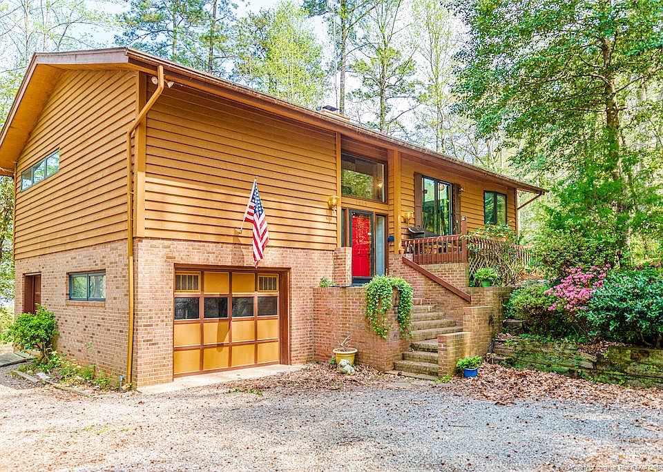 Get ready to say welcome home to this beautiful updated waterfront split level property in the gated/golf community of Carolina Trace! This open floor plan features a vaulted ceiling in the main floor living area with a sunroom off of the living room with views of lake trace. Kitchen has been remodeled with granite counter tops, new copper sink and subway tile backsplash. The dual fireplace is in the formal dining room and living room. Extra space off the living room great for a book nook or sitting area. The master suite features a walk in closet, dual vanities and an extra closet in the bedroom. Downstairs features new tile floor in the hallway and full bath. There is also 2 bedrooms and laundry room. Almost every bedroom features sliding doors that lead you outside! The property features a dock great for fishing and the lot feels very secluded while being in a neighborhood.